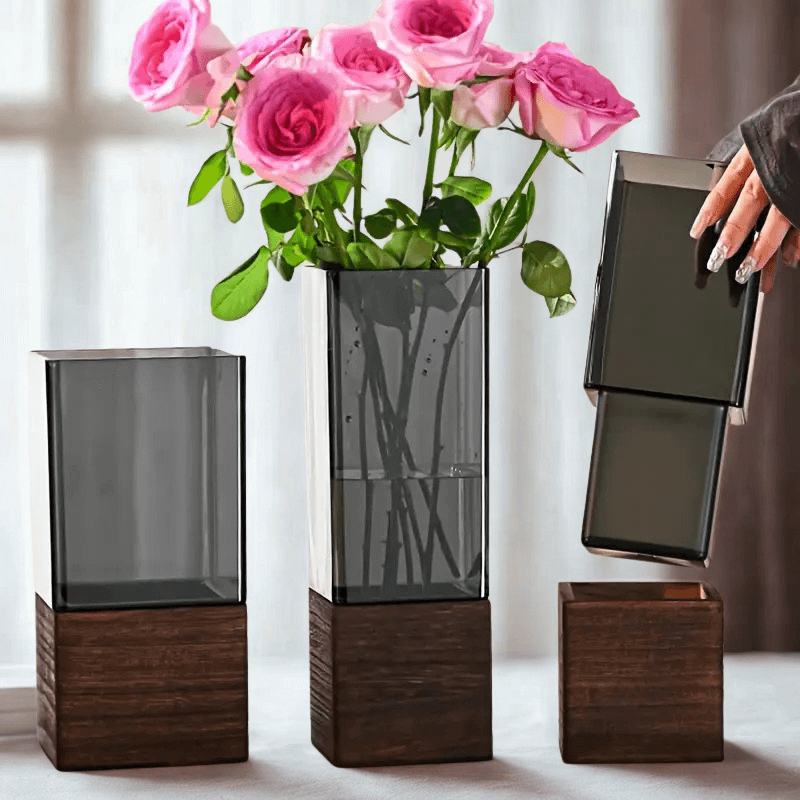 Vaze moderne din acril fumuriu set de 3